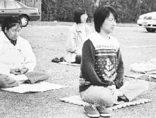 【明慧网2001年10月1日】图:星期日早上,在离大学两英里的地方,一群法轮功修炼者在和平地打坐。在中国,如果从事同样的活动,他们将面临酷刑的折磨。普林斯顿人(Daily Princetonian)高级记者茉莉.布鲁默(MOLLY BLOOM)9月25日撰文写道:草地上还凝结着露珠儿,所以他们都带着坐垫来打坐,有的坐垫是一小块地毯,有的是旧的汽车脚垫,家用的扁平绝缘材料,浴垫或折叠的毛巾。