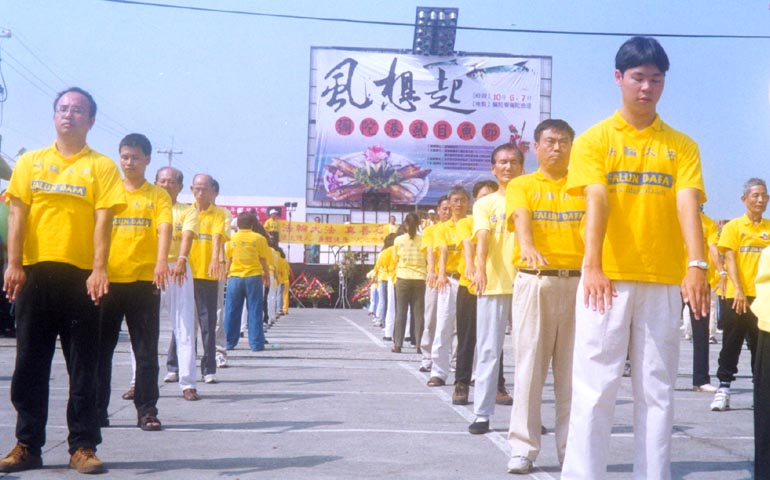 【明慧网2001年10月11日】南台湾高雄县2001年文化马拉松是由高雄县政府文化局主办的,目的是让台湾人民了解自己的家乡。在十月六、七日于弥陀乡渔港举办一年一度的虱目鱼节,大会举办了的活动丰富多彩:有亲子写字比赛、跳鼓阵、舞龙舞狮、鱼苗放流、皮影戏演出、民俗技艺赶集、农渔产品展等,其中法轮功的五套功法表演和讲真相及征签的摊位颇为令人瞩目。