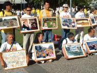 10月6日早上八点植物园集体晨炼后,我们有两百人到布里斯本会议展览中心外侧的街道旁参与“正法之路图片展”,其中一百五十位同修每人双手各捧一幅正法之路的图片站在人行道旁,中间穿插各式各样讲清真相的横幅,我们展览的诉求,从对街上看去是那么的醒目。一位西人警察走过来向派发简介的我说:坚持下去!我支持你们!!类似这样鼓励、温暖的声音总是不断,我真希望全世界善良的人们也都能够看到邪恶的本质,能够了解法轮功的真相,能够从中国邪恶政治流氓集团的欺世谎言中尽快清醒过来。