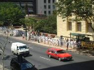 学员们所到之处,处处展现大法的美好与祥和。昨天,有警察专门给学员发来电子邮件,对学员的行为表示敬佩和感谢。法轮功的和平慈善与江泽民的恐怖暴力迫害形成强烈对照,给世人留下深刻印象。