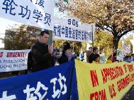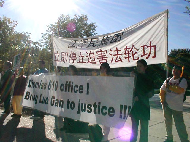 据海外媒体报道,十月一日海外各国法轮功曾前往当地中国使领馆请愿并召开新闻发布会,谴责江泽民政府对法轮功的残酷镇压,要求中国政府立即“解散610办公室,法办罗干”,并呼吁全世界善良的人民和法轮功学员一道,共同制止江泽民政府的“恐怖主义行径”,紧急救援在中国受迫害的法轮功学员。