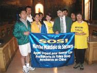 康皮涅:一队华裔步行者周四在康皮涅市市政厅被招待接见。步行者们来自美国,他们将走向布鲁赛尔,卢森堡及伊斯坦布尔。他们希望引起西方社会对在中国法轮功(佛家功法)成员为受害者的镇压的关注。据这些步行者说,有一亿多他们的同胞炼习法轮功。
