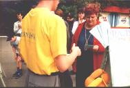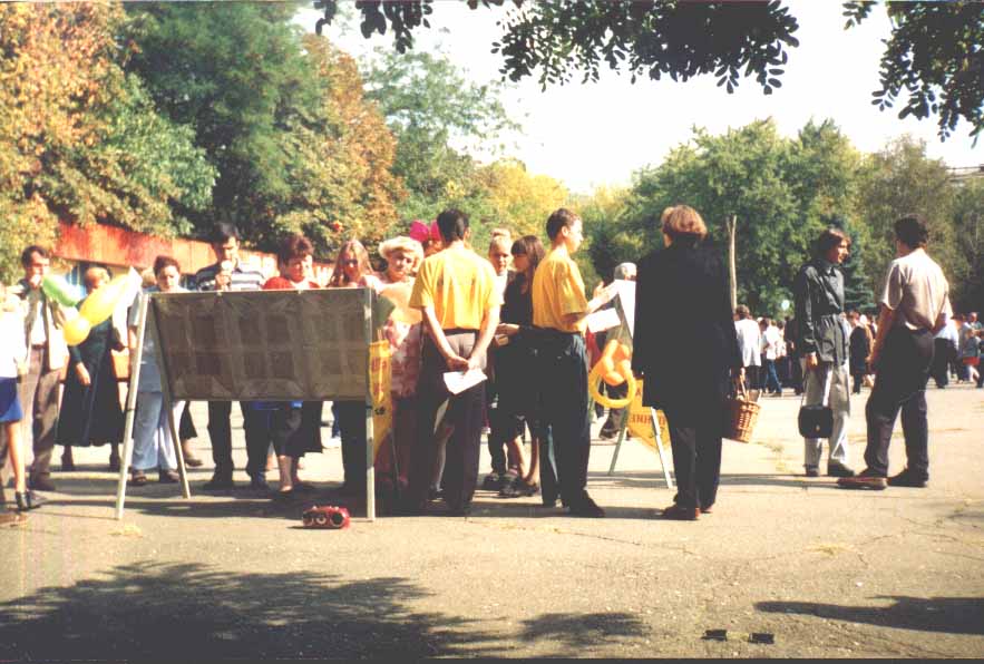 在节日这一天,我们邀请了市里的文化长官尼古拉.库里尼奇来参观,他离老远就看见了我们的洪法旗帜,并大声地读着上面的金字:“真善忍”,然后说:“说的太好了!我注意到,最近3年来,我们城里的人变得越来越善良!”