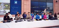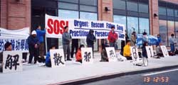【明慧网2001年10月2日】9月30日清晨, 纽约大法弟子从明慧网上得知,辽宁一大法女弟子被警察打得奄奄一息后从楼上扔下摔死的消息后,便自发来到领事馆前抗议中国对善良法轮功学员的迫害