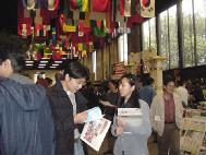 在活动筹备之初,我们得知我们的展位将和中国大陆,台湾及新加坡的展位相邻。同修们准备了足够的中文资料。同修们还善意地与他们交谈,很大程度上澄清他们对法轮功学员的误会。