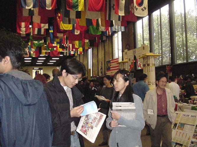 用于正面讲清法轮功真相的图片展吸引了很多人的目光。交谈中同修们得知很多人以前已经听说过法轮功,但由于消息来源及观点不一,很多人的认识都还很模糊。看着美国,加拿大及世界各国,各地政府对法轮功的褒奖状,看着全球各地法轮功修炼者炼功的宏大场面,看着中国大陆法轮功学员所遭受的苦难,许多观众才真正的了解什么是法轮功。在了解江政府镇压法轮功的真相后,大家纷纷表示不可理解,并对中国法轮功学员的遭遇深表同情。有许多人欣然在征签表上签名,并表示如果生活在自由世界中的人们如果对法轮功事件视而不见,世界上就不再有正义和公理。有些人还记下了我们的炼功地点,表示一定要学习法轮功。
