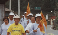前天有位脚起水泡的学员,本已打算退出此次活动,但当队伍行经他的家门时,他毅然再度加入我们的行列。即使他已极度疼痛,但正念的威力终使他能坚持到今日的终点---壮围乡,真正展现大法弟子「难忍能忍,难行能行」的精神。