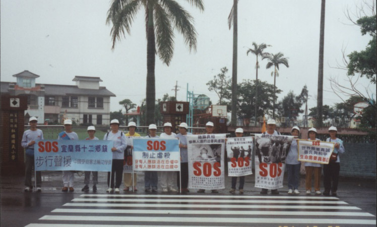 因逢周一,有部分学员无法参与,早上出发时共有19位学员,虽然人数减半,但大家依然士气高昂,精神抖擞。途经著名的冬山河亲水公园观光景点,我们把握机会向这些来自全省各地的游客弘法。下午雨势一度变大,但学员们坚定正念,踏着稳健的步伐继续前进,全程没有人穿雨衣。是啊!我们大法弟子助师正法,是「世间大罗汉」,用神的一面才能「正一切不正的」,烈日和大雨丝毫动摇不了我们强大的正念。在雨中奋力前进的正法队伍,体现出步行的庄严神圣,有位中年人一路骑机车紧跟在我们队伍后面,到休息处时,他问我们可以为sos活动做些什么,我们请他签名支持;我们希望通过告诉人们江泽民之流迫害法轮功的真相和介绍法轮大法是以“真善忍”为准则的修炼系统,启悟善良人们的正义与良知,走出冷漠,用热情支持我们,并促使他得法的种子萌芽。