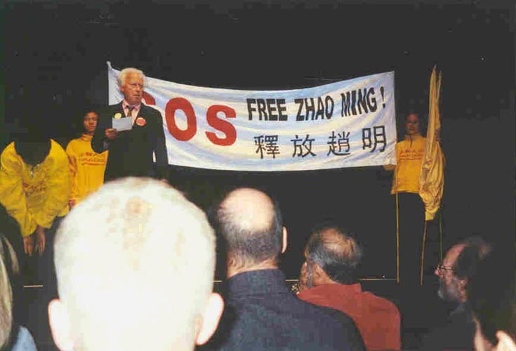 艾莫音公爵说:“……对我个人来讲是一个最重要的例子。就是赵明,一个我认识、我尊重的爱尔兰都柏林Trinity大学的研究生。不幸的是,1999年圣诞节前夕,他因去中国探亲被抓,从此至今被关在监狱,受尽了酷刑折磨,这就是现在当政的这个可怕的集团!在过去,我们听说过许多有关酷刑的迫害,可这都是发生在眼前,现在仍在继续发生!而且发生在一大批公民身上。幸运的是,许多国家对中国政府施加了许多压力,许多国家、许多人都加入了这一运动。这些法轮功的修炼者只是在读书。法轮功永远不会消失。因为在台湾就有几万人在修炼法轮功。在欧洲几乎每个国家,包括美国、爱尔兰、北欧国家、德国、以至非洲都有法轮功修炼者!犹如猛虎下山,势不可挡。”