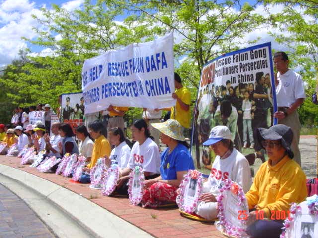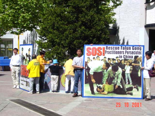【明慧网2001年10月28日】在每年一度的澳中人权对话前夕,澳洲大法弟子于10月25日(星期四)在首都堪培拉向外交部递交了一封信,敦促澳政府在本次人权对话中关注中国法轮功修炼者的人权状况。有70余名大法弟子参加了这次行动。之后,大法弟子们先到大使馆对面发正念,然后又到市中心洪法,散发大量大法资料。