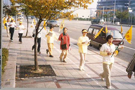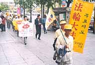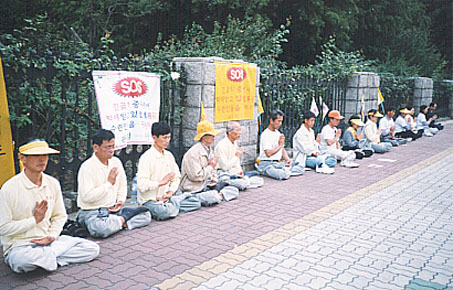 图片报道:韩国学员在中国大使馆附近静坐请愿