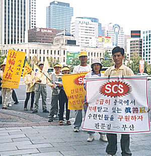"SOS"-呼吁紧急救援中国法轮功学员活动在韩国