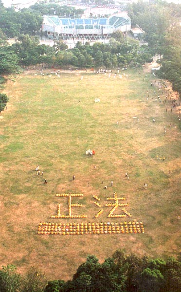 【明慧网2001年10月29日】2001年10月28日早晨,邪恶之徒诬蔑法轮大法为“XX”的两年之后,超过230名香港大法弟子在维园炼功时组成“正法”二字。香港学员将会加倍努力向民众全面