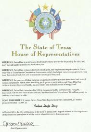 我,杰西卡.法拉,德州第148区议员宣布2001年10月12日为休斯顿市第148区“法轮大法日”,并号召所有居民认知这一事件及参加所有有关活动。