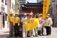 台湾法轮功学员在小学运动会上介绍法轮功。美国休士顿法轮功学员向休士顿大学的师生们洪法讲真相。横跨加拿大步行的学员在途经的小镇讲真相、揭露邪恶。