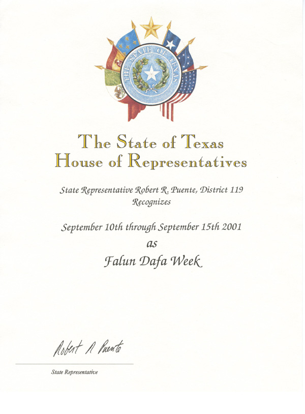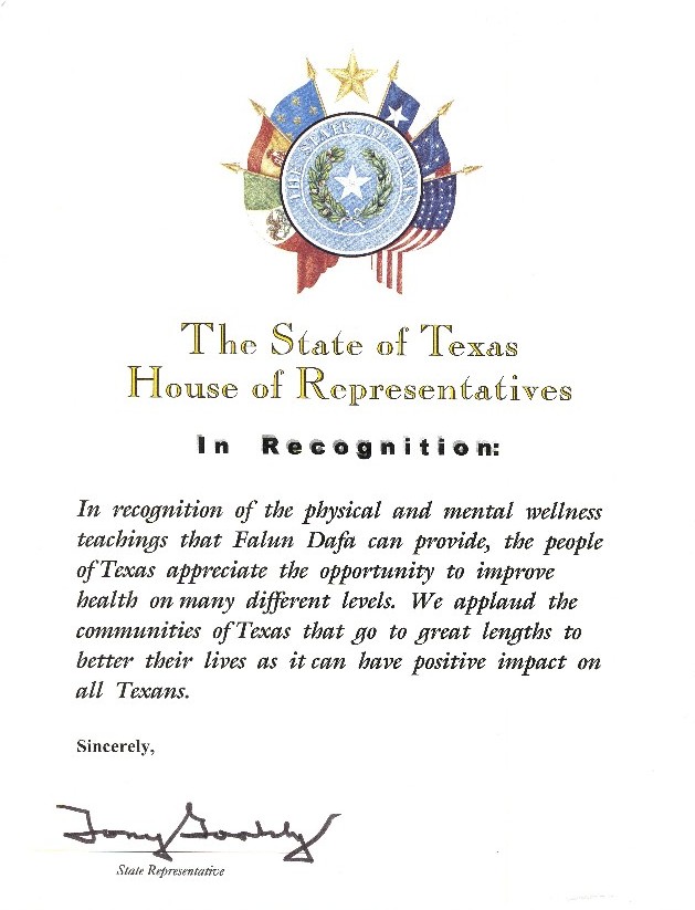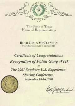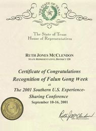 南卡罗来那州州务卿表彰法轮大法修炼者