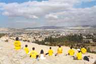 28/9清晨,小分队来到了至高点,在这里可以看到整个雅典。我们准备在这里发正念和集体炼功。到此后发现很多人在忙碌着什么,车辆也禁止通行了。一打听才得知,希腊总理要来此为一条新建的路剪彩。当然跟来了大量媒体。学员们会心的笑了,一切都是安排好的。我们在山上发完正念后,穿着黄T恤站在总理讲台的后面,正好面对一大排媒体的镜头,静静地炼功。两名本地学员准备亲自向总理递信。总理秘书说:“我们已经收到了你们的信。可送些其他材料到办公室来。”