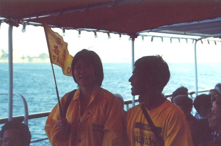 9月29日,我们分成三个小组。台湾学员被邀请到中文学校教功,加拿大学员去加拿大和美国使馆送信,瑞典和丹麦学员意外地买到了去南部群岛的一日游的半价船票。船上有八九百游客,南部几个著名的小岛也从来没听过大法。于是学员们举着“真、善、忍”小黄旗身穿黄色T恤,带着各种文字的真相材料又开始了一天的“游行”。