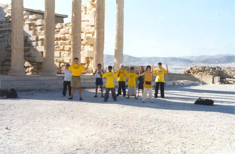 继意大利罗马9月25日活动后,九名来自瑞典、丹麦、台湾和加拿大的大法弟子,自愿组成了一支小分队于26日飞向欧洲文明发源地─雅典。