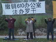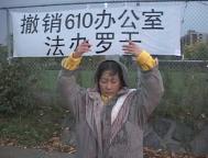 渥太华学员中使馆前冒雨呼吁撤销610办、法办罗干(图)