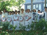 30余名小弟子在台上用中、英文集体背诵师父的经文、诗词,博得与会者的热烈掌声。
