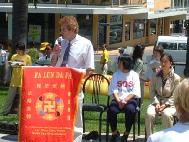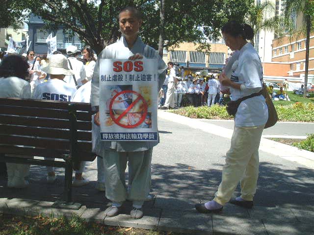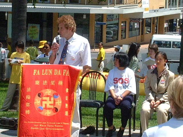 代表着不同国家和地区的25名大法弟子(包括西人弟子)在大会上发言,讲述了作为在正法中确立的、更新的生命,在正法与正法修炼中,助师正法、讲清真相、救度世人、铲除邪恶的可歌可泣的动人故事、修炼心得及在法上的理性提高与升华。他们中有参与“SOS紧急救援”在中大使馆、中总领馆前及中联办前绝食、静坐的;有参与“SOS紧急救援”长途步行的,还有刚刚走完从悉尼到布里斯本全程的步行小组的代表;更有大家熟悉的、正在进行环球画展,为“SOS紧急救援”义展义卖的艺术家、大法弟子章翠英。