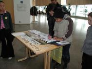 我们的图片展,分成两部份主题,一部份是大法洪传的历史镜头,另一部份是大法在中国遭受残酷迫害的真相。我们还准备了征集签名的表格。文化宫一开门,就开始有人来认真地看图片,并与我们交谈,问问题,几乎每一个人都主动地在征签表上签名,不分成人还是孩子。