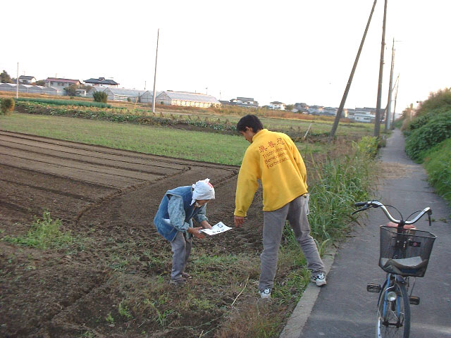【明慧网2001年11月12日】2001年11月6日,日本SOS步行北线已行进到茨城县境内的古河市。发现真相资料不足了,东京附近的大法弟子闻讯后,一位母亲带着两个孩子,另一位母亲安顿好家中11岁的儿子,便连夜开车将报纸和资料送到当晚步行学员宿营的古河综合公园。由于不熟悉当地道路,在营地的附近找寻很长时间,大家发正念,互相提醒保持纯净心态,终于送达。而两位母亲带着两个孩子返回家中时,已是深夜近1点了。