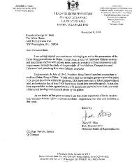特拉华州众议员致信布什总统,请求帮助制止江泽民集团对法轮功学员的迫害
