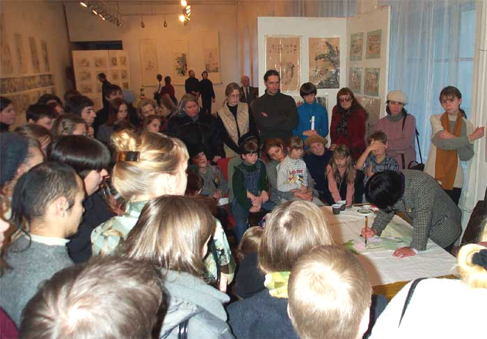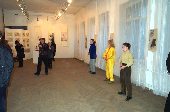 还有一位早年毕业于列宾美术学院俄罗斯老画家,在街上看见了章翠英画展的广告就来了。他看了一遍又一遍,并问了许多问题,久久不愿离去,最后说了一句话让我们大吃一惊,他说,“章翠英女士的画代表着善,非常清纯,可以清除不正的,这次章翠英来办画展是为清理欧洲而来的。”他又说,他希望章翠英多留几天,他尽量让更多的青少年来感知一下什么是善的氛围,救救俄罗斯的在逐渐堕落的青少年们。