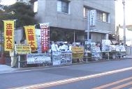 【明慧网2001年11月20日】11月14日上午9点半左右,参加SOS长途步行的学员,从东京都惠比寿公园出发步行到东京中国大使馆前请愿。当到达中国大使馆前时,历经两个月SOS步行的学员们高举“法轮大法”的大旗,昂首阔步走到大使馆门前,并把“法轮大法”“SOS紧急救援在中国受迫害的法轮功修炼者”的大旗竖立在大使馆前。