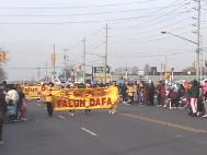 我向从蒙特利尔行至纽约市、今天到达皇后区的法轮功学员祝贺。