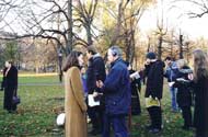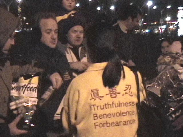 【明慧网2001年11月21日】36名西人学员为证实大法,为讲清真象,为救度世人,迎着邪恶的疯狂,毅然走向天安门,打出了横幅,喊出了震动寰宇的声音:“法轮大法好!”