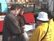 外长:我认为今天发生的事是完全不能接受的。我们很遗憾地看到中国在签署了联合国的人权条约并表示要尊重人权后,又按惯例地加强了对法轮功等群体的镇压,仅就这次瑞典人和其他国家的人被抓,更增加了问题的严重性。当然了,我们会尽一切可能给予这些瑞典公民支持。