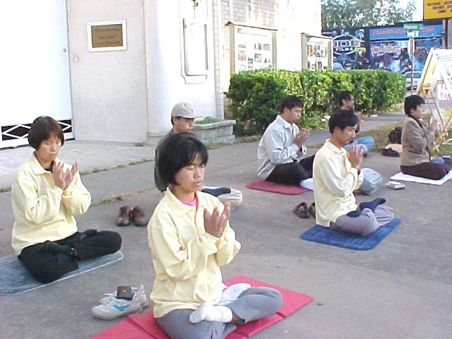 也许是缘份到了,不久我在校园看到一张传单,是法轮功的免费学习班。我决定去参加。在学习班上看李老师讲法的录像,然后是学习五套功法,每天一套。就这样,九天班上完后,我才发现,我的眼睛在不知不觉中可以看很长时间书了,也可以用电脑了,连续几个小时也不累。