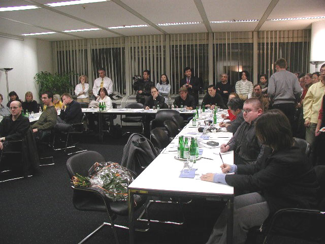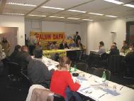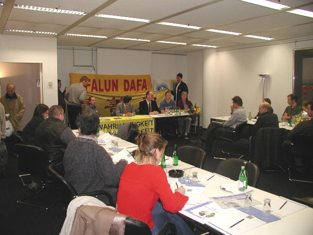针对记者的提问,学员们和国际人权协会的新闻发言人又介绍了法轮功及其在中国被迫害的情况,揭露了“610办公室”的真相。学员们诚恳呼吁德国政府对此事紧急关注,伸张正义,呼吁媒体帮助受迫害的国内外法轮功修炼者,传播真相。学员还呼吁媒体和善良的人们在反对恐怖分子的同时也千万不要忘记反对极权政府支持下的国家恐怖主义。