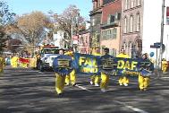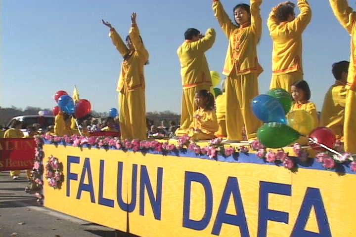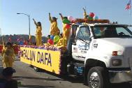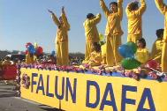 接下来就是怎么装扮花车。原本想请外州会干木匠活的学员帮忙,谁知他们那天都腾不出空来。怎么办?突然悟到我们不能太依赖别人了,不能因为一两个人不能参加就什么也干不成了,要做到师父经文里讲的那样“在讲清真相中,不要等,不要靠,不要指望外在因素的变化。”(《致北欧法会全体学员》)。虽然我一时怎么也想象不出如何把写有“真善忍”和“法轮大法”的木头板子搭上车,但大家的心一坚定下来之后,无意中得知我们本地就有一个学员懂木匠活。结果可想而知,在不长时间内,漂亮的法轮大法花车就装扮起来了。学员们在花车上不停地表演着五套功法,在上百个游行团体里分外醒目,效果非常好。观众纷纷接过真相材料,向学员挥手致意。