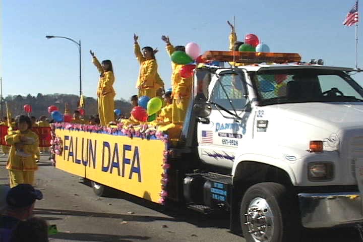 【明慧网2001年11月22日】11月17日上午,来自新泽西、DC、德拉华、彼斯堡及费城的六十多位法轮大法学员参加了在宾州首府海里斯堡举行的宾州中部最大的一次游行。这次游行的主题是“儿童看世界”,天气出奇的好,很多小弟子也特意赶来参加游行,给队伍增添了几分天真、烂漫。伴随着普度、济世音乐,学员们向热情的观众表演着优美的功法、传递着大法真相材料,再一次把千古难逢的大法带给了这里的千家万户。