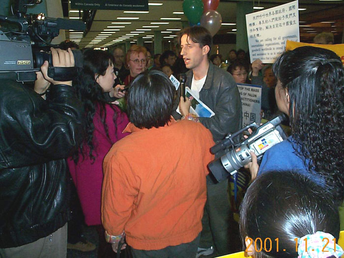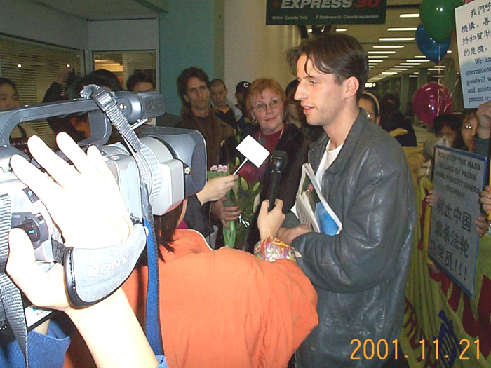 近60名加拿大多伦多大法弟子和数家中西文媒体在机场迎接泽农的归来。当泽农步出候机室时,在场的所有人报以热烈的掌声,一束束鲜花,一张张慈悲的笑脸,向震撼寰宇、令天地动容的实践这一伟大壮举的大法弟子致以最崇高的敬意。