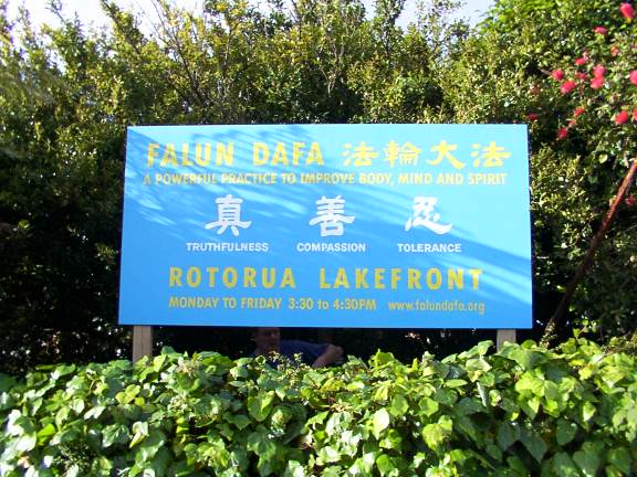 图片报道:新西兰罗陀如阿市区交通要道边的大法看板