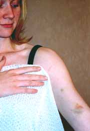 这是法国学员Hélène PETIT被天安门广场恶警殴打,四天后仍清晰可见的伤痕。