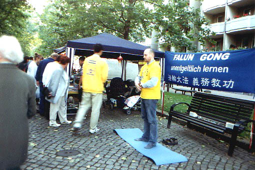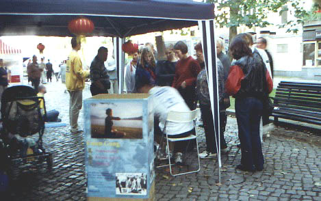 【明慧网2001年11月26日】在德累斯顿的“金骑士2001”的民间节上我们又申请到了一个展位。慈悲的师父安排了一位不修炼的朋友帮助我们一起洪法了三天,这位朋友也为自己将来的美好奠定了基础。还有一位刚得法的德国女士也参加了其中两天的洪法。