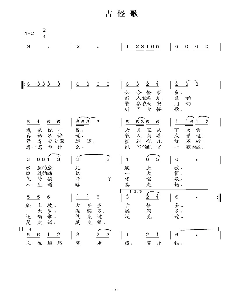 歌谱简谱(一)简谱(二) 1页 2页五线谱 (1页) (2页)