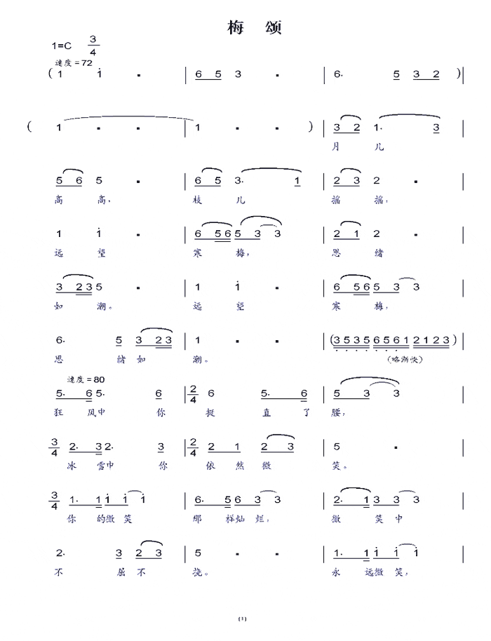 乐谱简谱(一)简谱(二)五线谱 (1页) (2页)
