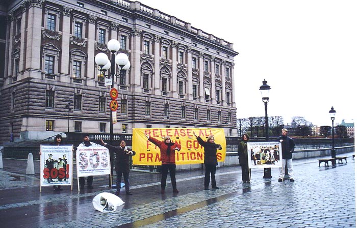 走上天安门正法的瑞典西人弟子再次召开记者招待会(图)