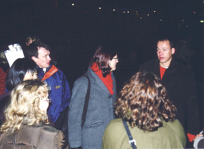 【明慧网2001年11月27日】11月23日下午刚刚从中国返回的瑞典西人大法学员们在斯得哥尔摩明特广场再次召开记者招待会。欧盟议员西西丽雅不顾天气寒冷赶到现场向安全返回的瑞典学员们问寒问暖,亲切交谈。电视三台在当晚新闻节目里进行了长时间转播。
