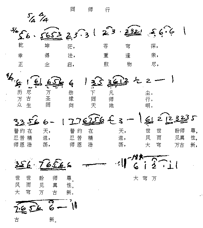 | 同师行(简谱) | 同师行(五线谱) | 过关(简谱) |