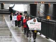 【明慧网2001年11月29日】周末在议会街,五位修炼法轮功的中国女性吸引了人们对她们及她们的诉求的注意。她们正在参加一项世界范围的救助中国的法轮功修炼者的步行活动。