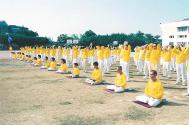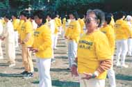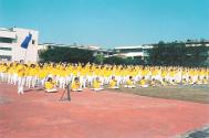 值得一提的是,校长本来不了解大法是什么,也不了解大法为何会受到迫害。学员在表演中向其讲清真相。他本来还有疑惑,但在看完我们的表演后,对我们赞扬与认同,并致词说:「炼法轮功的人都是好人」。另外在准备过程中,他们还答应给我们的几项便利条件,使得整个功法表演过程中不受干扰。例如,提供活动中心让我们整队。还可以在教室外面展示大法看板。更重要的是示范功法时不会同时进行其他比赛活动。使整个功法表演都能在庄严宁静的气氛下进行。