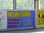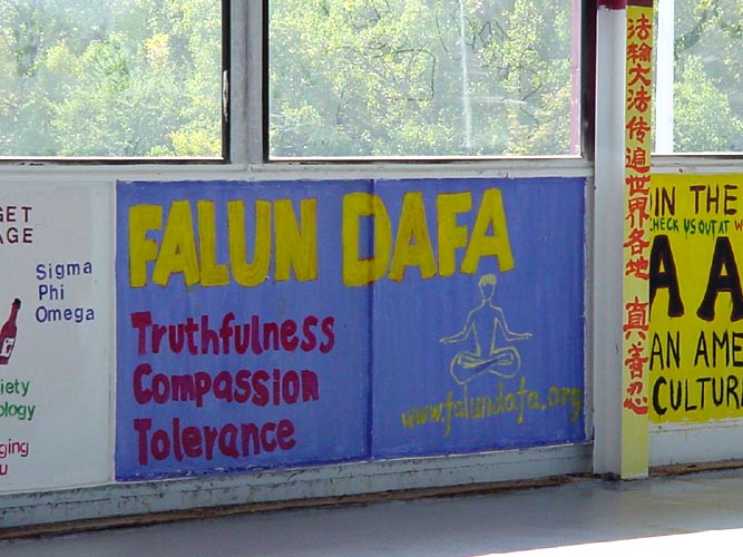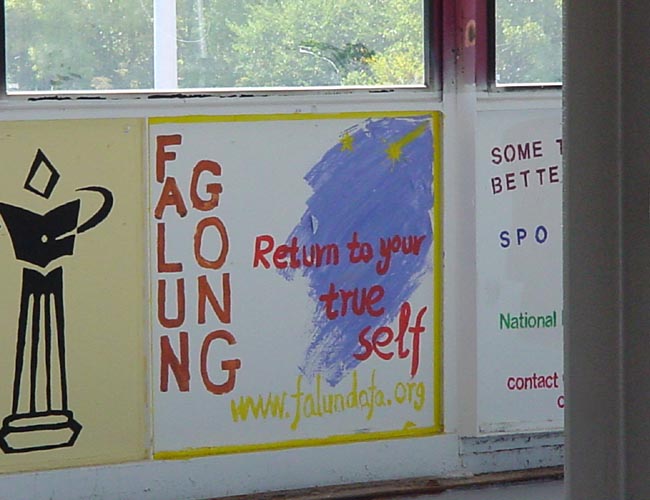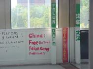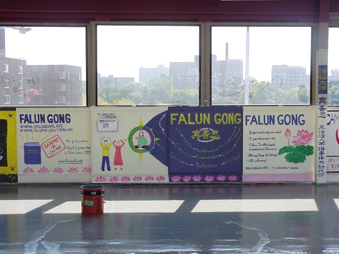 大学校园里的法轮功墙壁绘画(图)